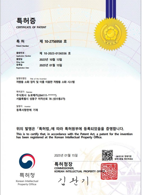 Patent Certificate / Certificate / Academic Paper 1 페이지