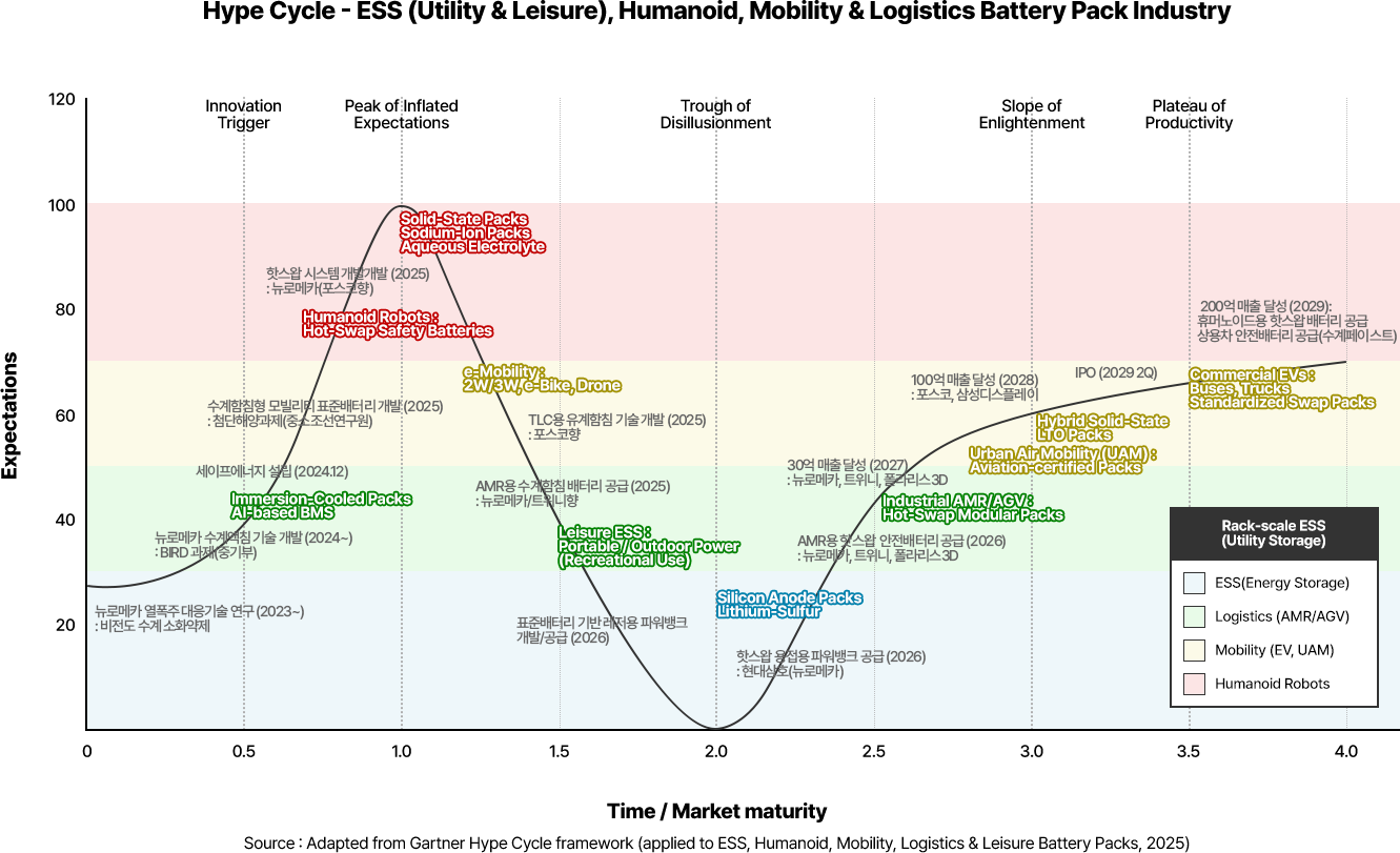 2차 전지 Gartner Hype Cycle: 배터리안전기술(전고체, 액침) 기대붕괴구간에서 캐즘 동시 발생 중